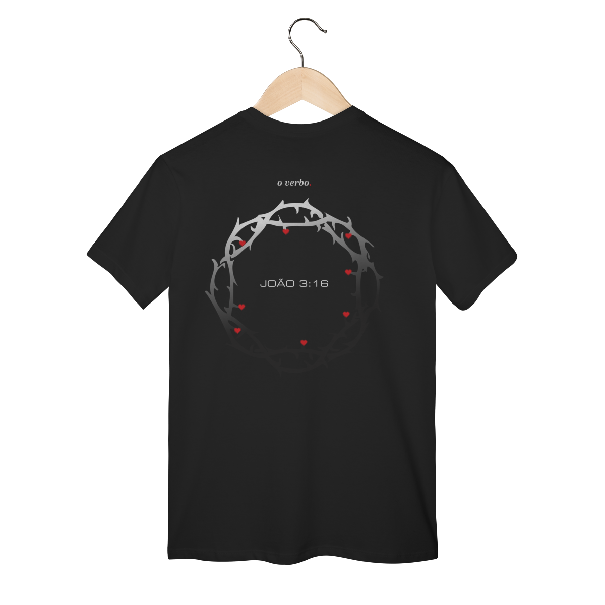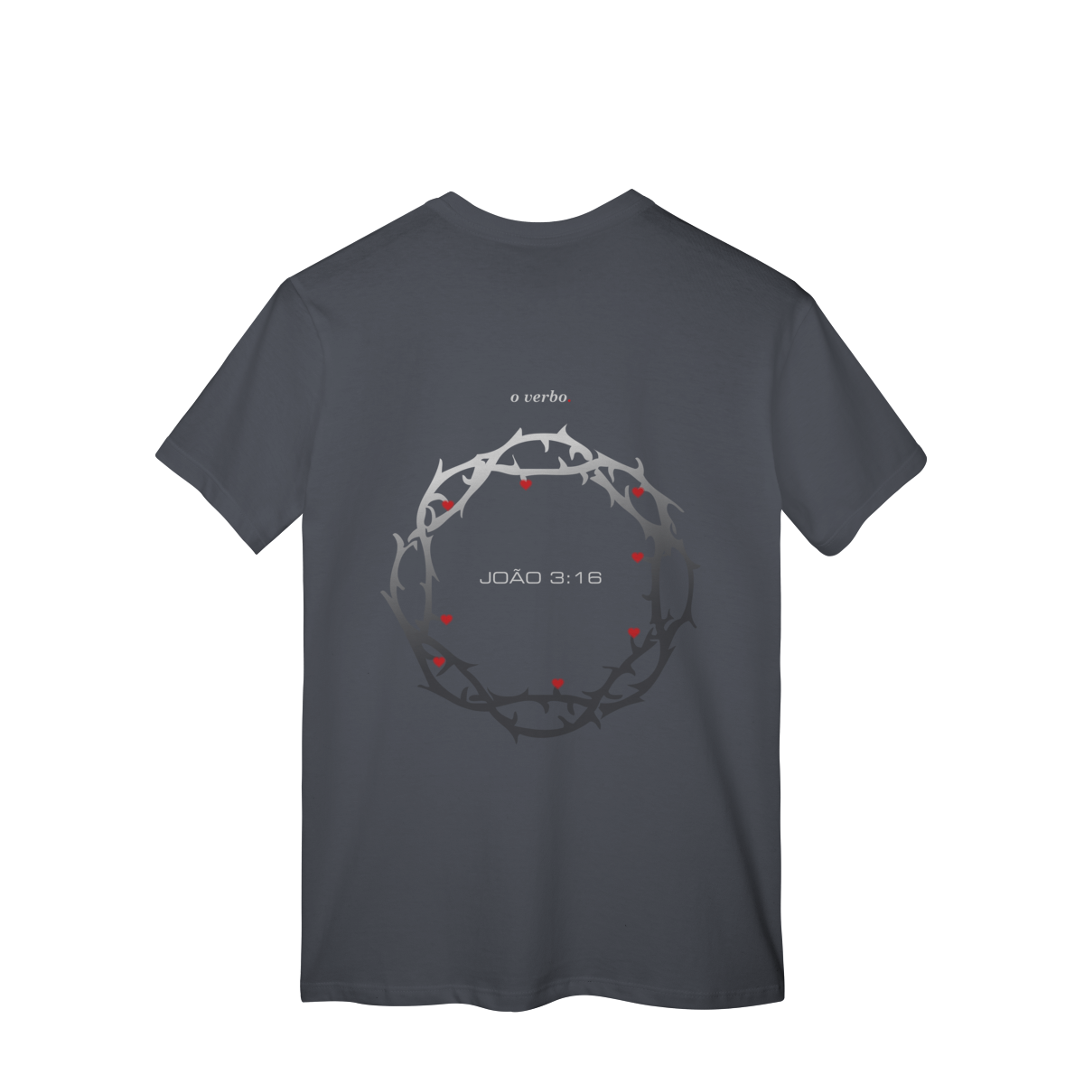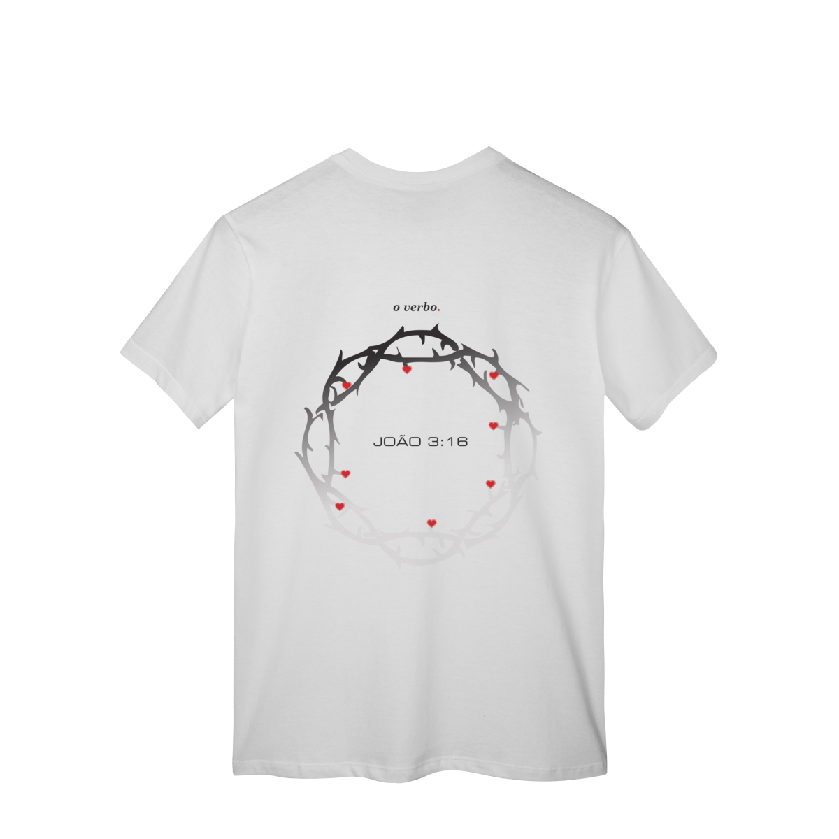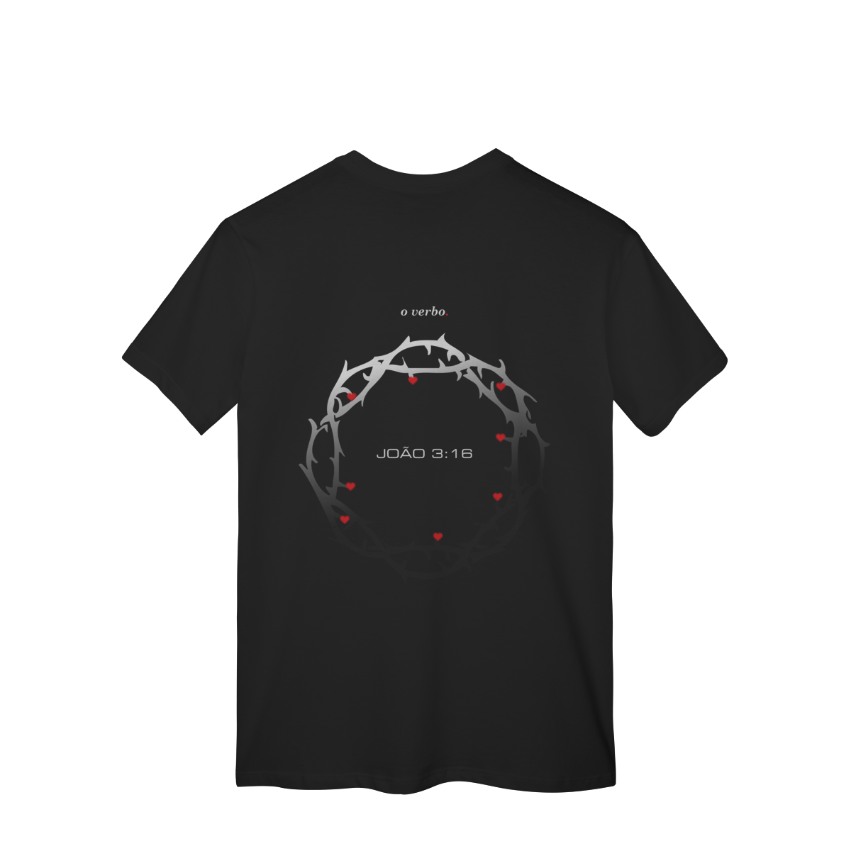 Nas costas, a coroa de espinhos envolve João 3:16, lembrando que o amor de Deus não foi abstrato, foi sacrificial, real, doloroso… e ainda assim cheio de graça.