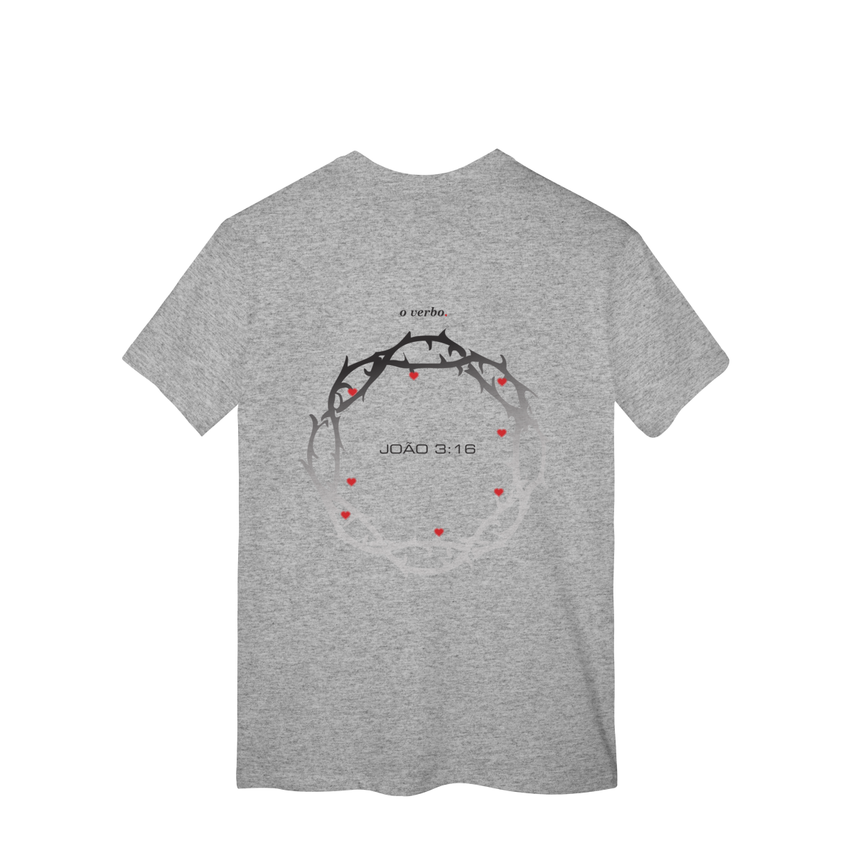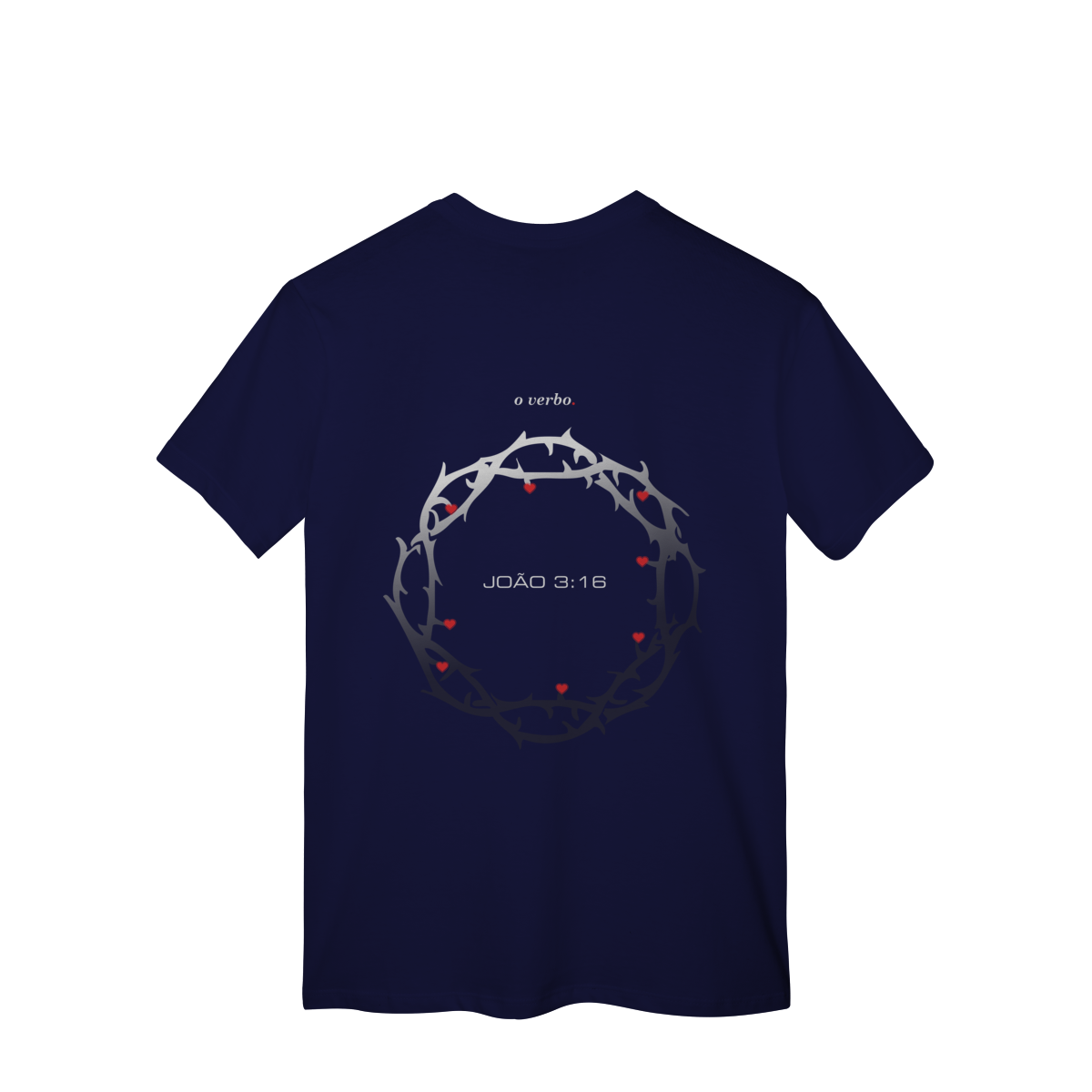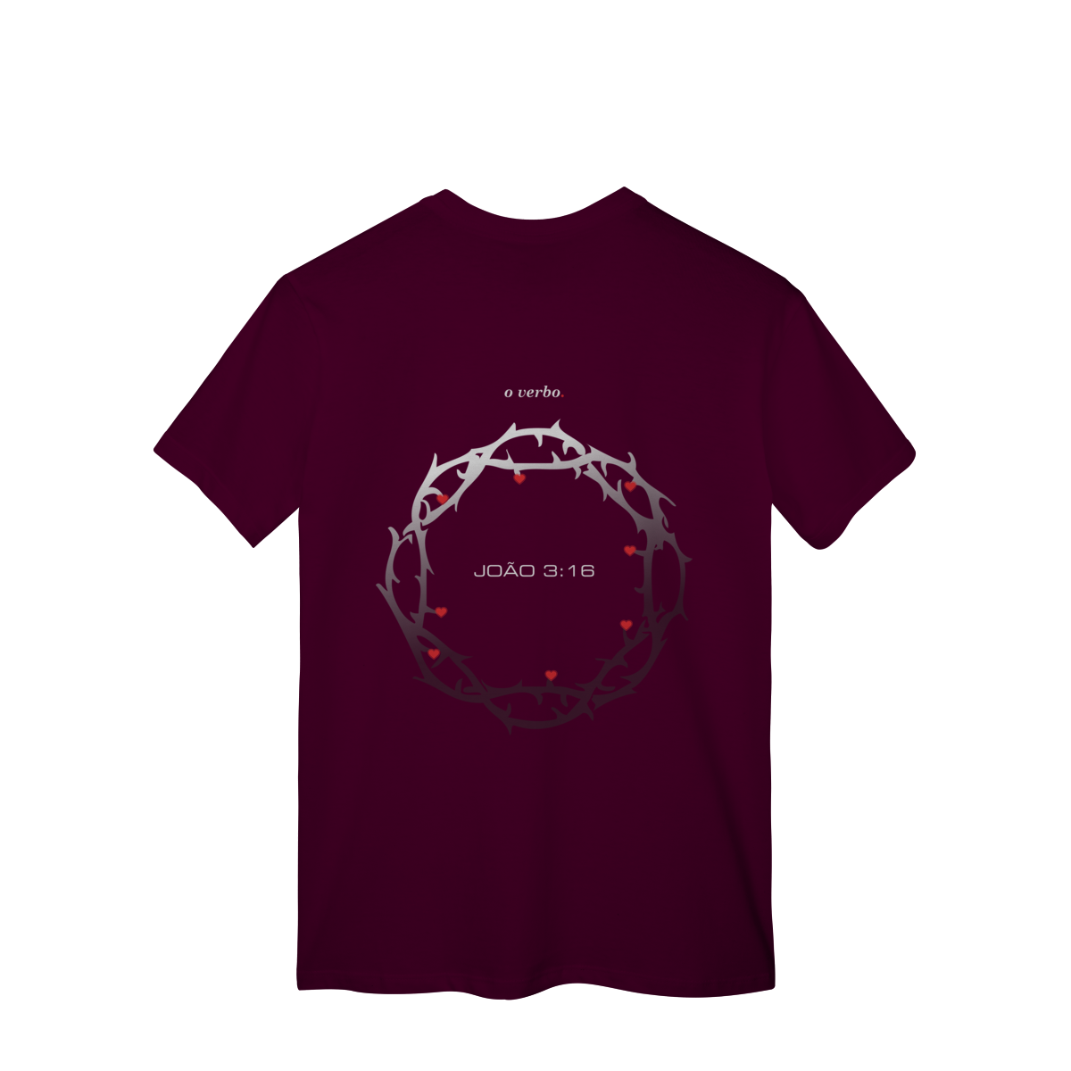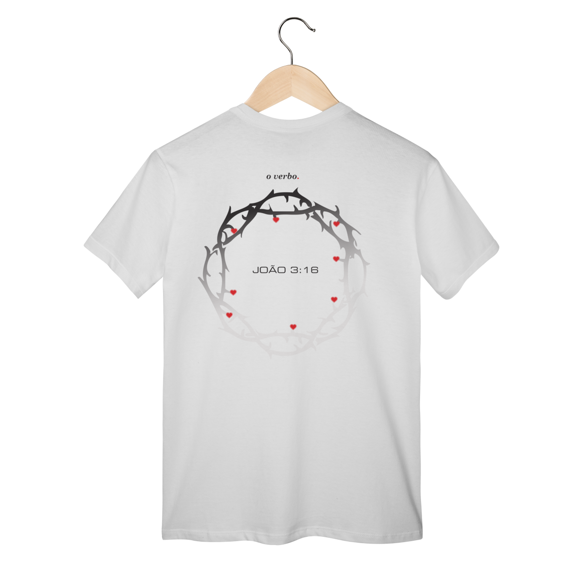 Nas costas, a coroa de espinhos envolve João 3:16, lembrando que o amor de Deus não foi abstrato, foi sacrificial, real, doloroso… e ainda assim cheio de graça.
