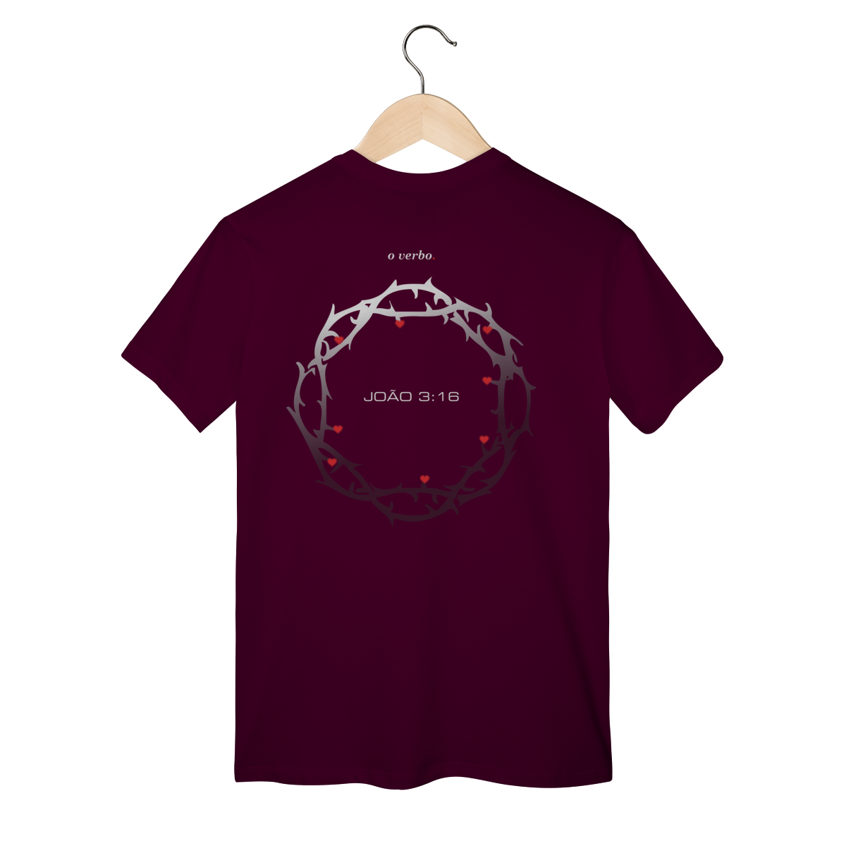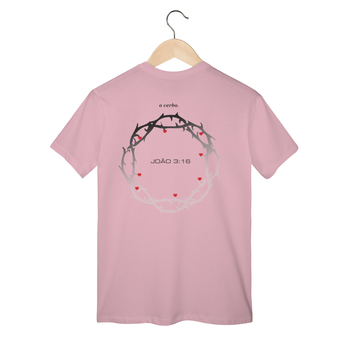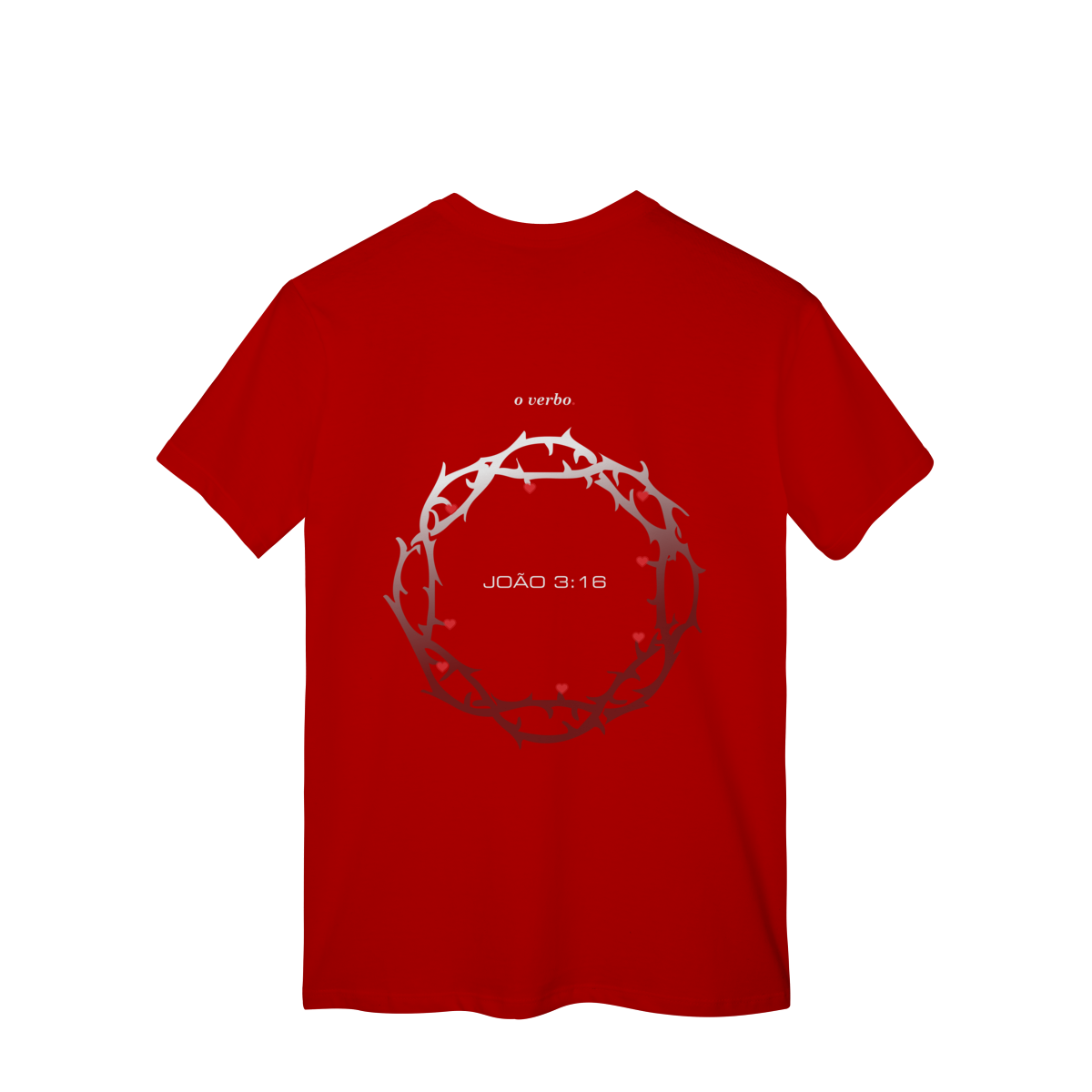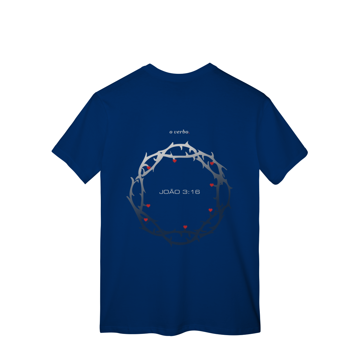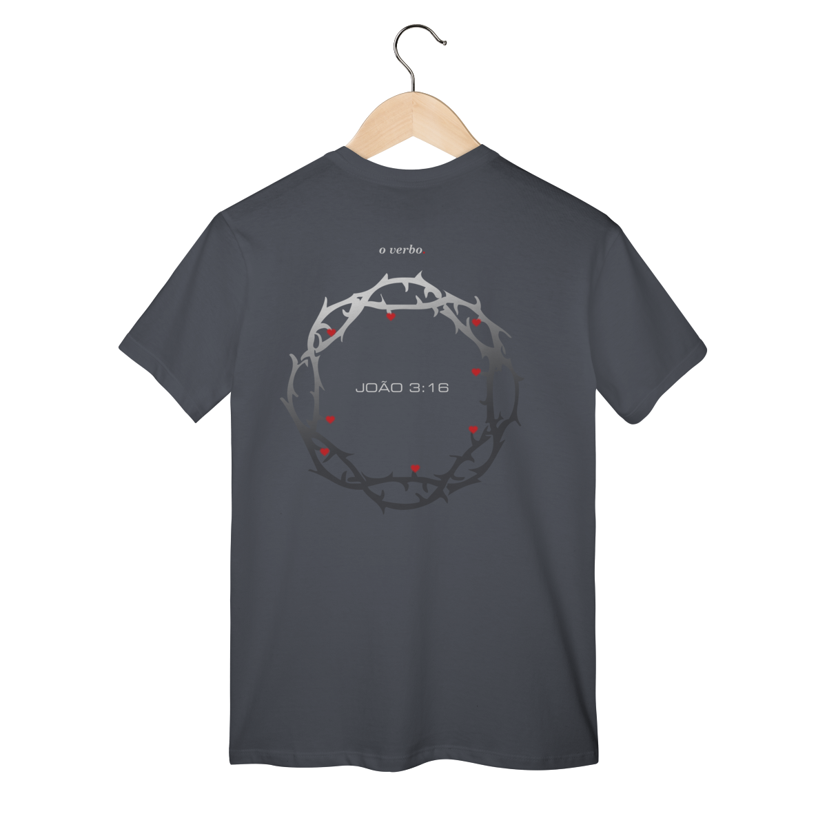 Nas costas, a coroa de espinhos envolve João 3:16, lembrando que o amor de Deus não foi abstrato, foi sacrificial, real, doloroso… e ainda assim cheio de graça.