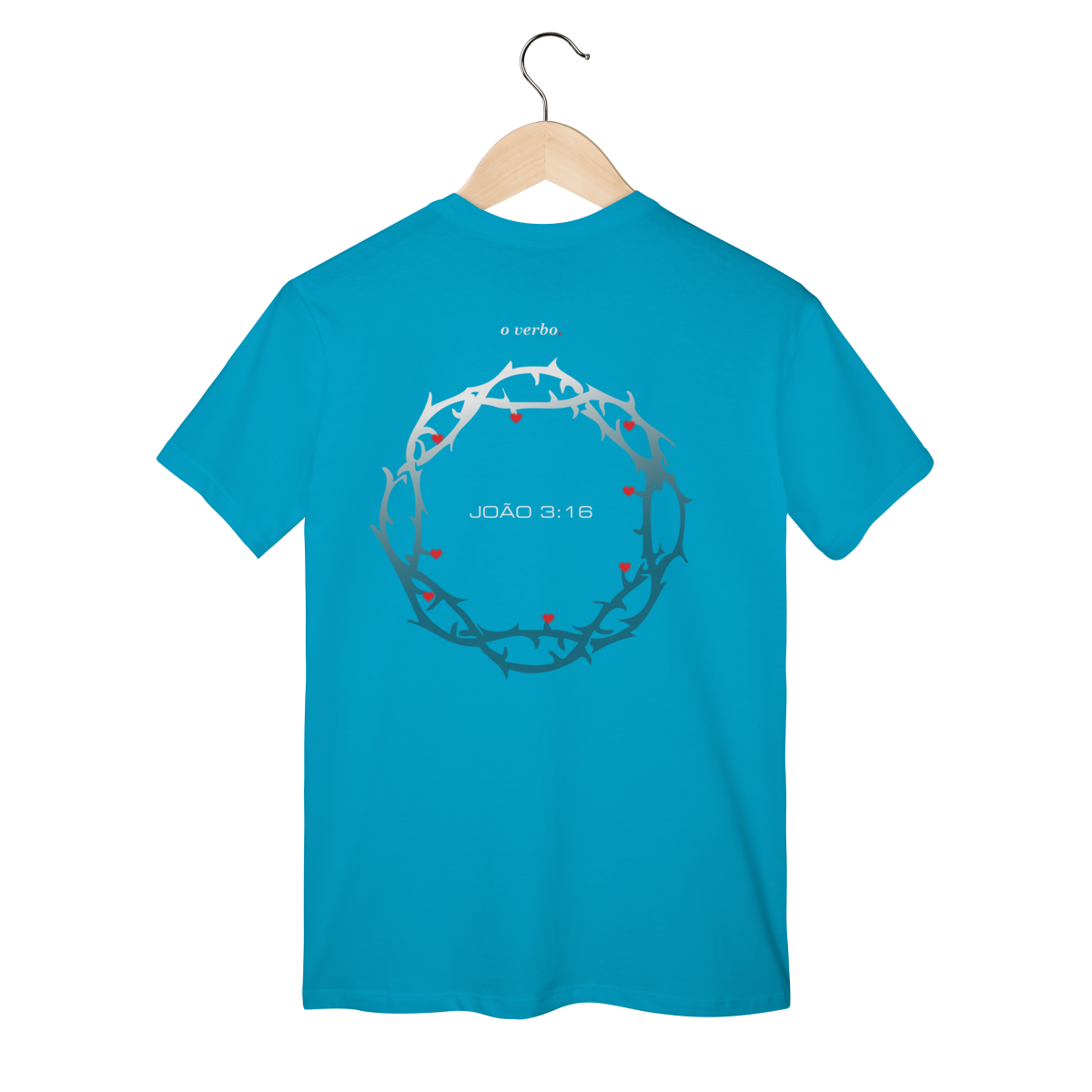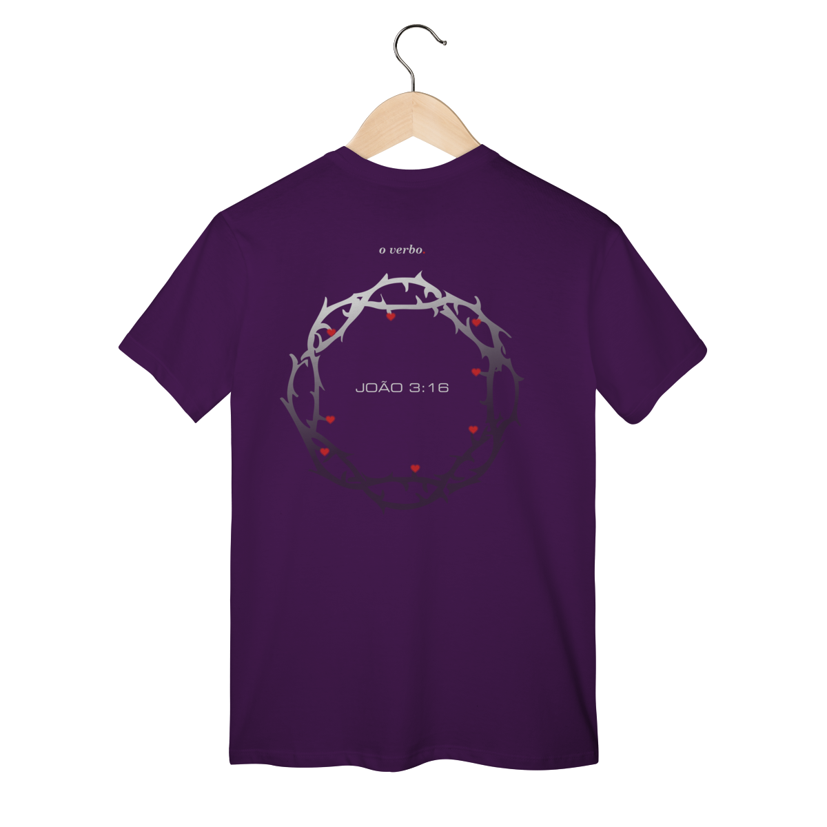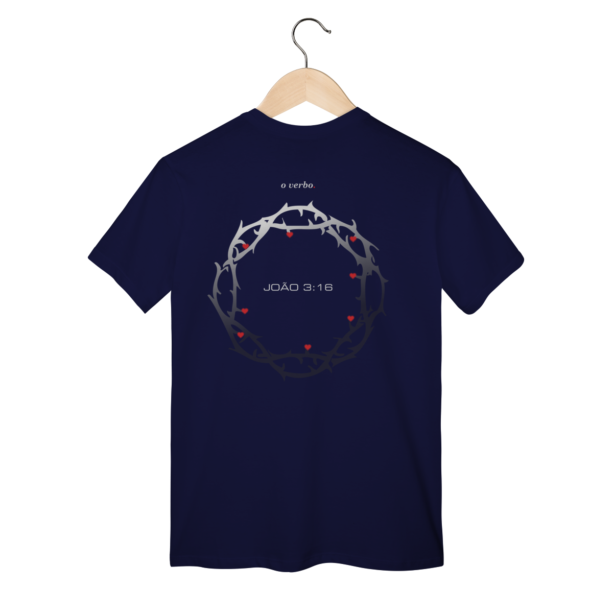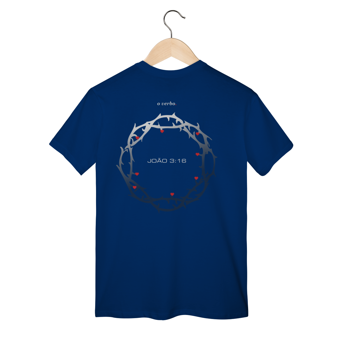 Nas costas, a coroa de espinhos envolve João 3:16, lembrando que o amor de Deus não foi abstrato, foi sacrificial, real, doloroso… e ainda assim cheio de graça.