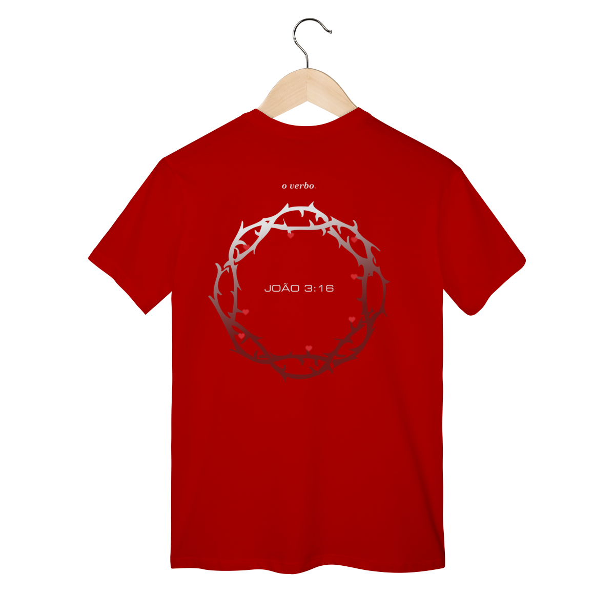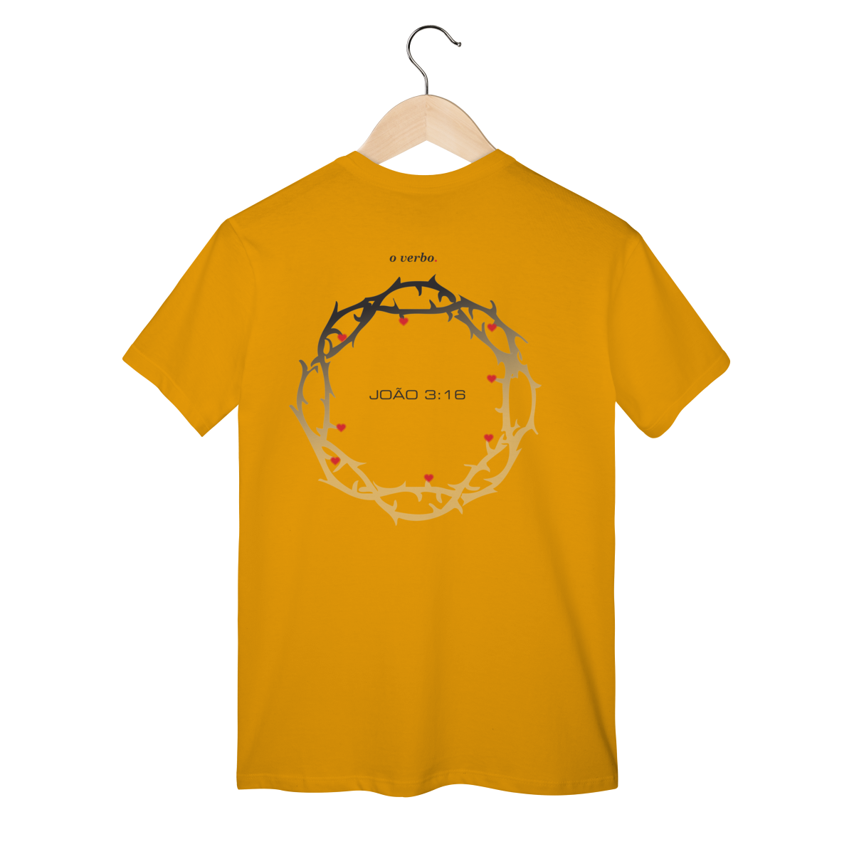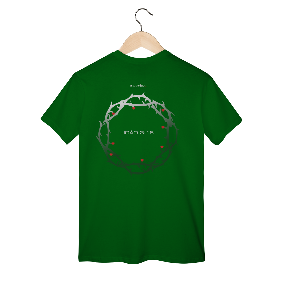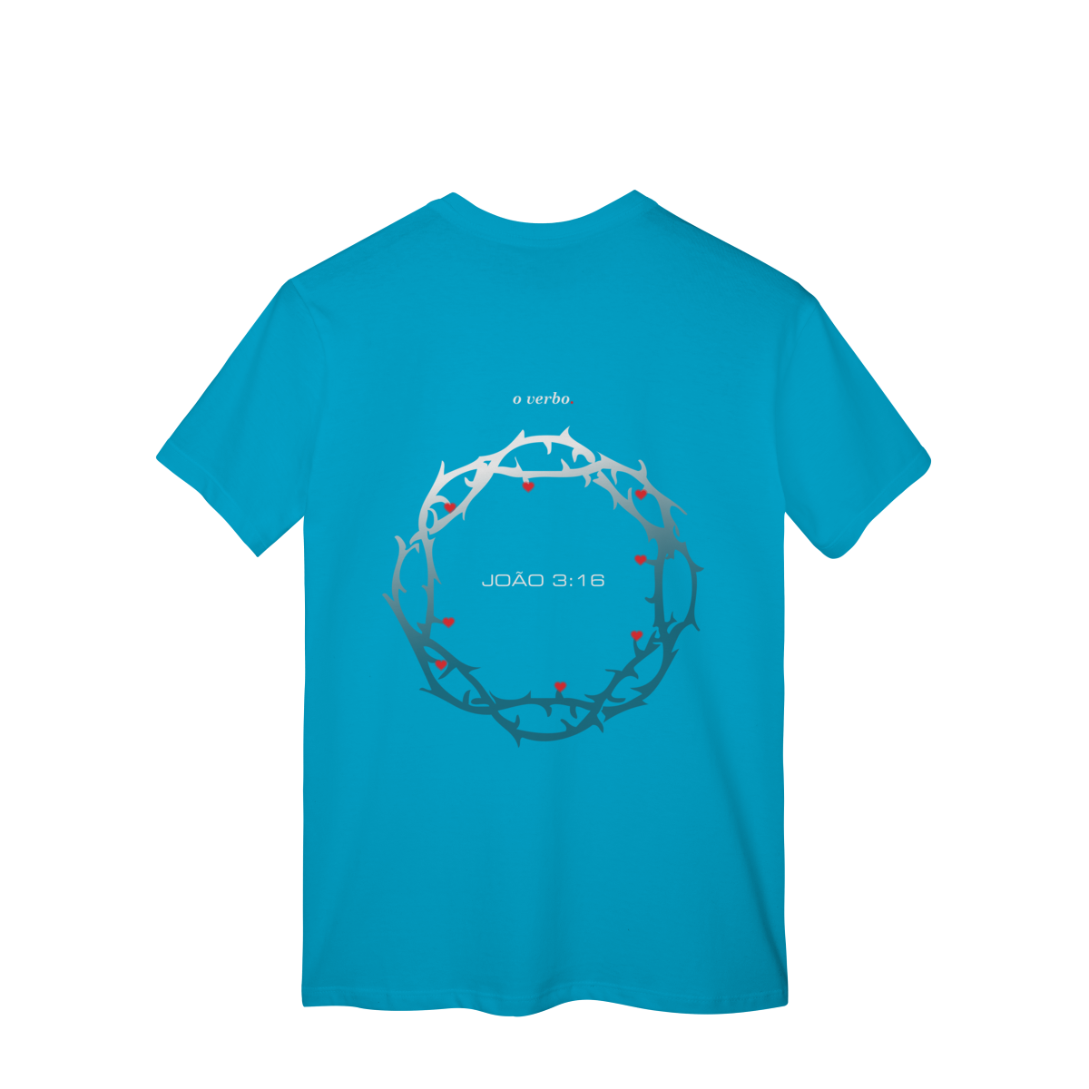 Nas costas, a coroa de espinhos envolve João 3:16, lembrando que o amor de Deus não foi abstrato, foi sacrificial, real, doloroso… e ainda assim cheio de graça.