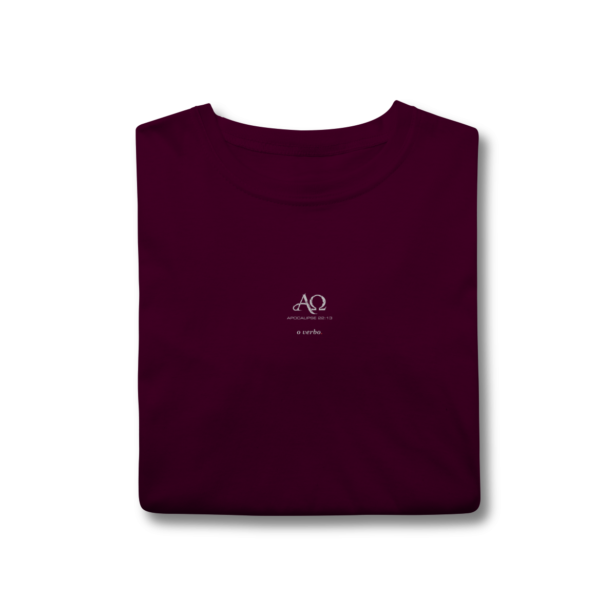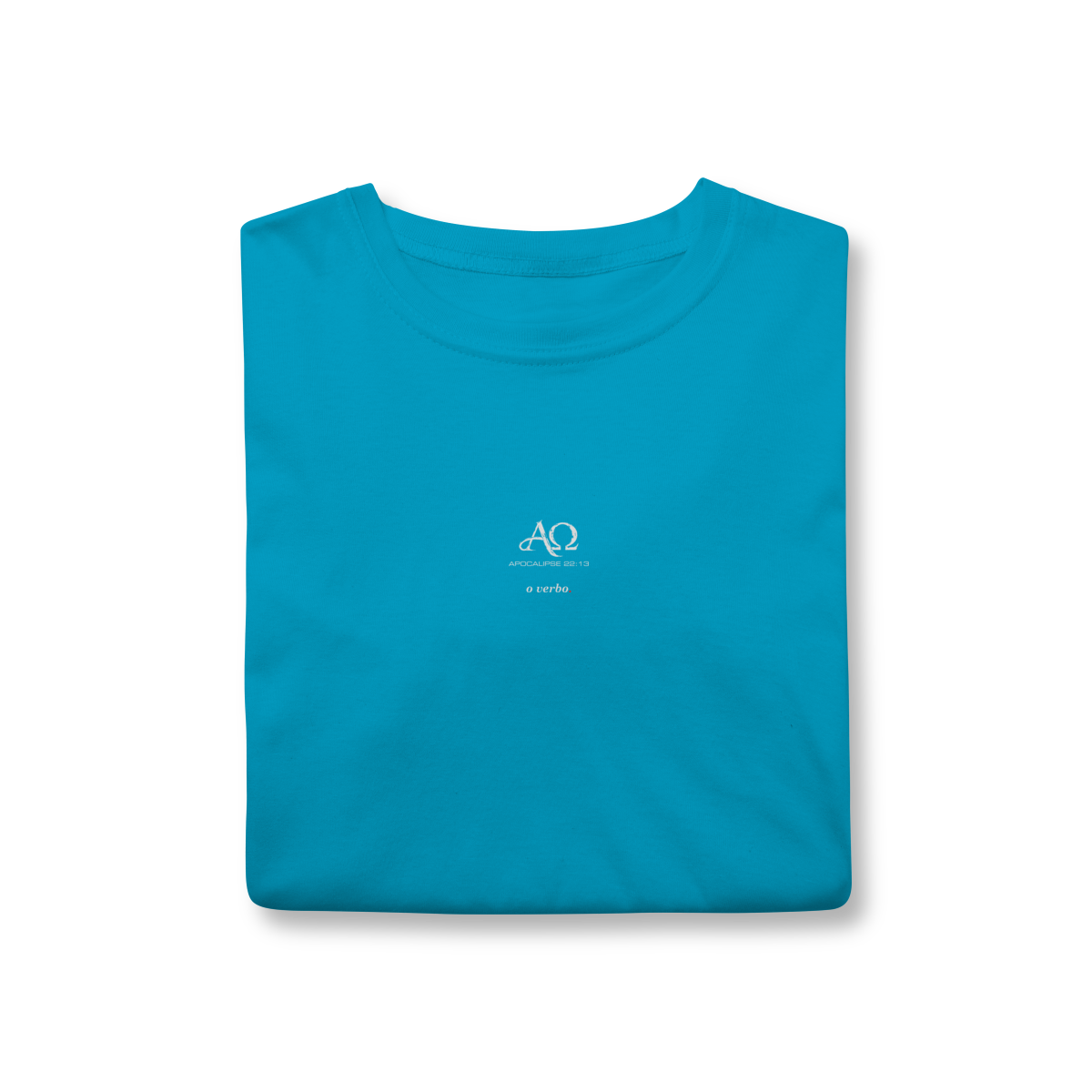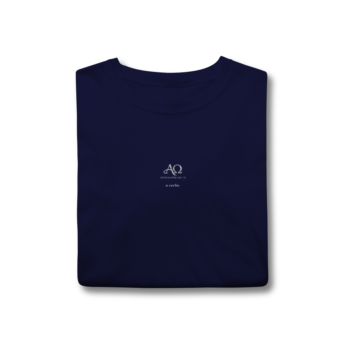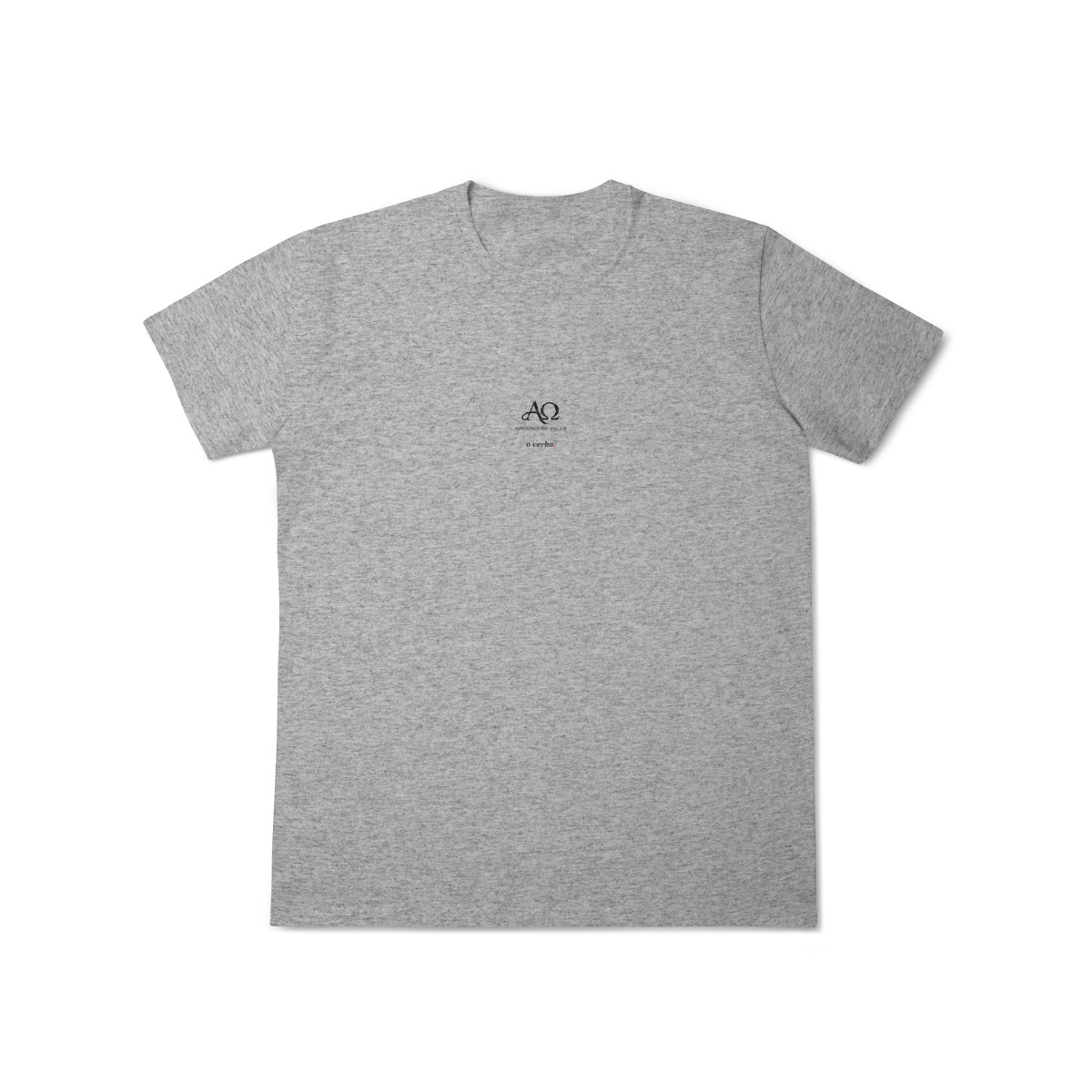 A camiseta Alfa & Ômega traz, de forma discreta e centralizada, a afirmação mais poderosa da fé cristã: Cristo é o princípio e o fim. Uma estampa pequena, intencionalmente contida, pensada para quem entende que identidade não precisa ser barulhenta.