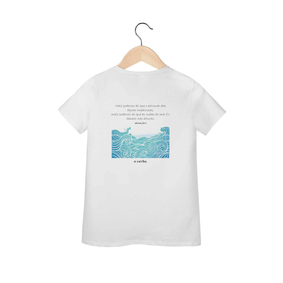 A Baby Long Prime | Mais Poderoso traz a força e a poesia do livro de Salmos estampada em arte minimalista. Inspirada no movimento das águas e na confiança em Deus em meio às tempestades, esta peça é um lembrete diário de que mesmo nas maiores ondas, Sua presença é a nossa paz.