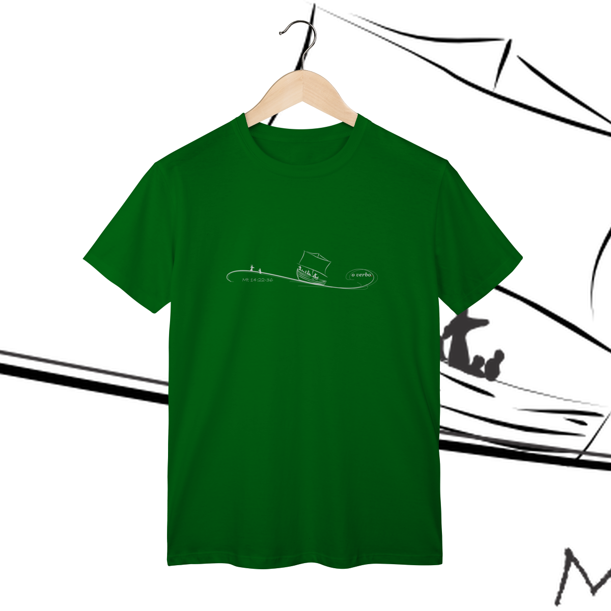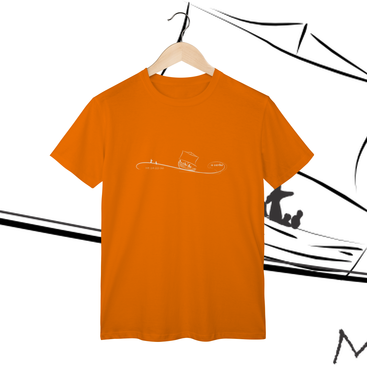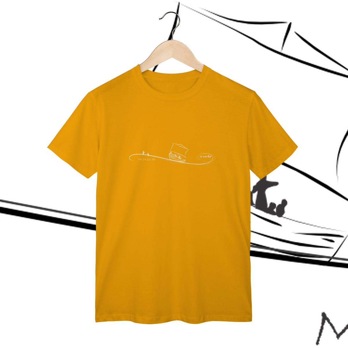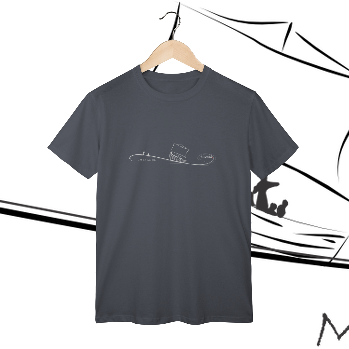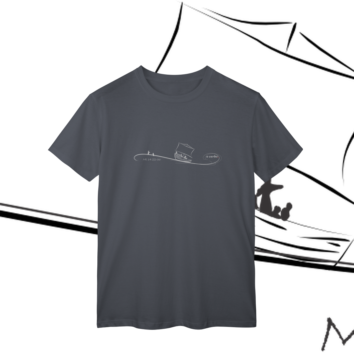 A linha contínua retrata Jesus, Pedro e o barco em Mateus 14:22–36, lembrando que mesmo quando os ventos sopram forte, Cristo continua sendo o chão firme sob nossos pés.