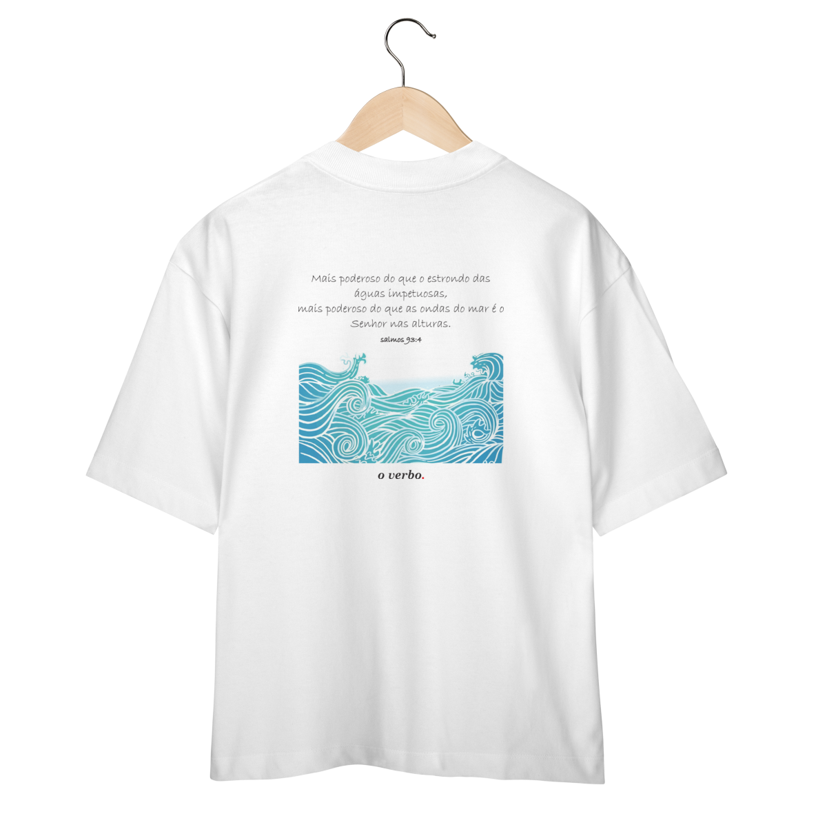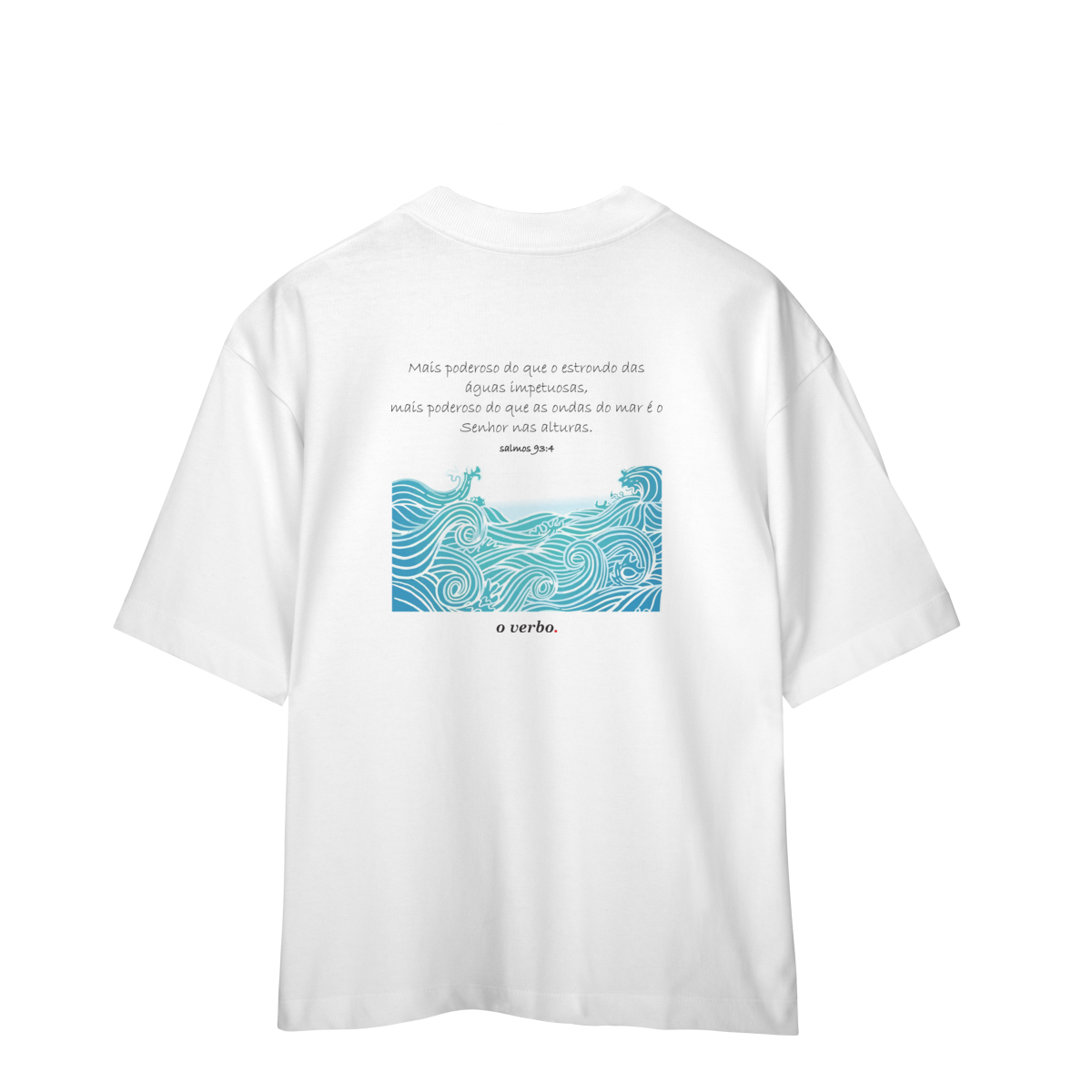 Na frente, o minimalismo da assinatura “o verbo.” reforça a essência clean da peça. Produzida em algodão premium, oversized e confortável, é mais que roupa: é mensagem, identidade e fé em movimento.