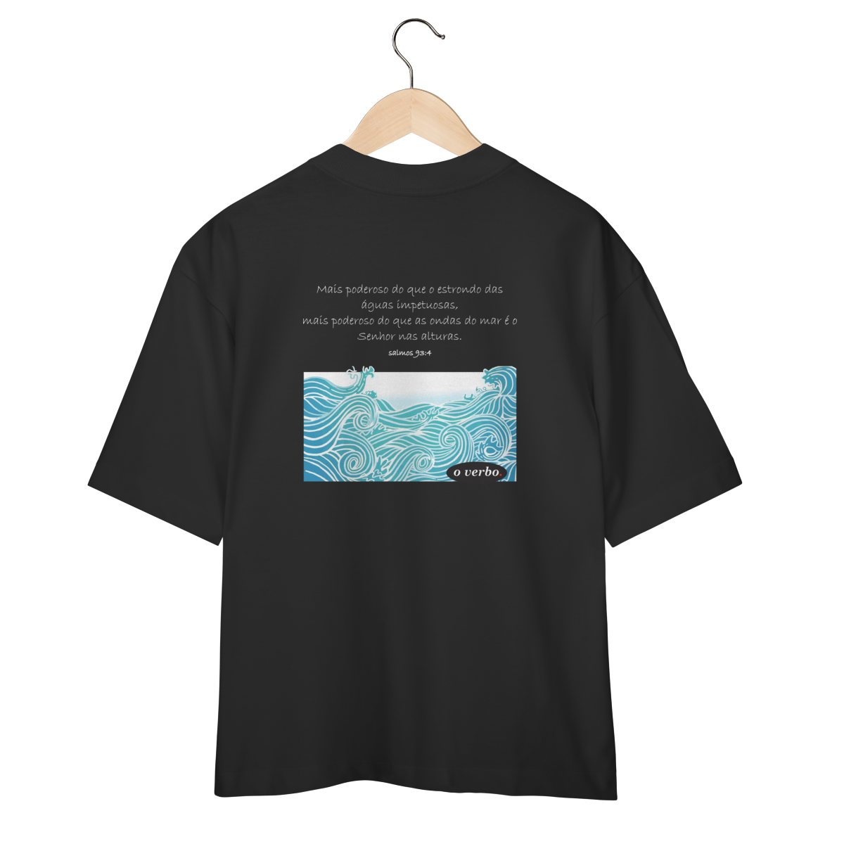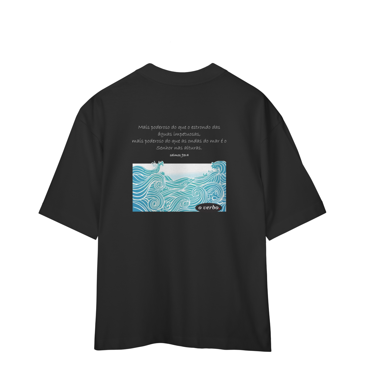 A camiseta “Mais Poderoso” carrega em suas costas o impacto do Salmo 93:4, com ondas intensas que lembram as tempestades da vida, mas também proclamam que o Senhor é mais forte do que todas elas. Na frente, o minimalismo da assinatura “o verbo.” reforça a essência clean da peça. Produzida em algodão premium, oversized e confortável, é mais que roupa: é mensagem, identidade e fé em movimento.
