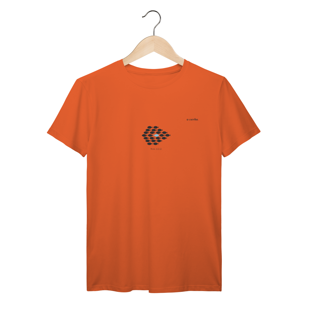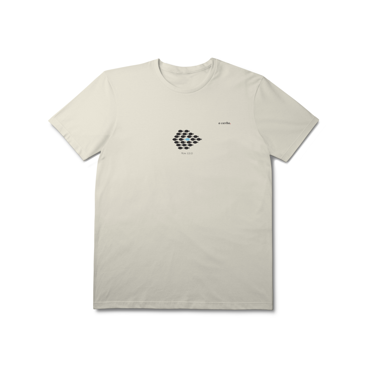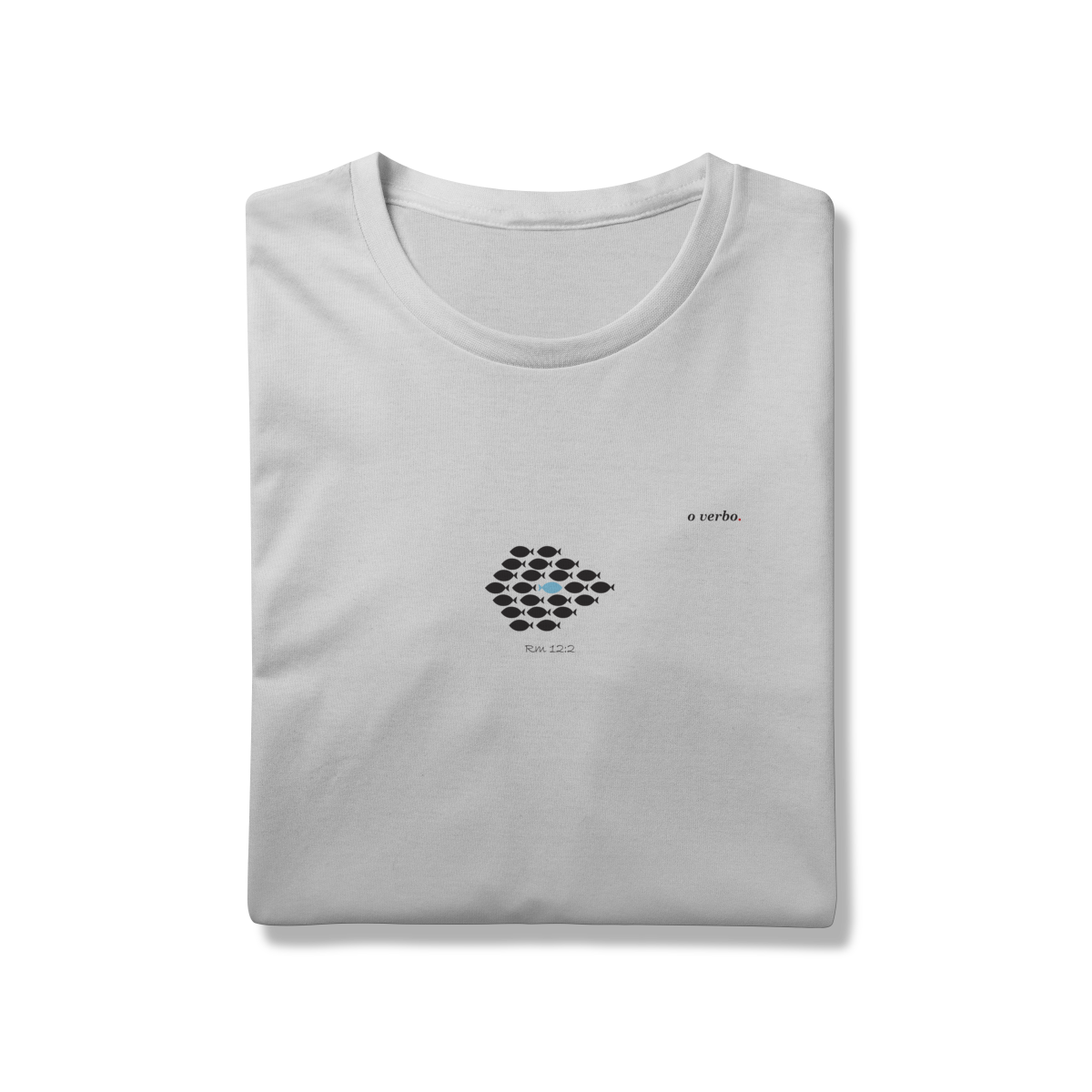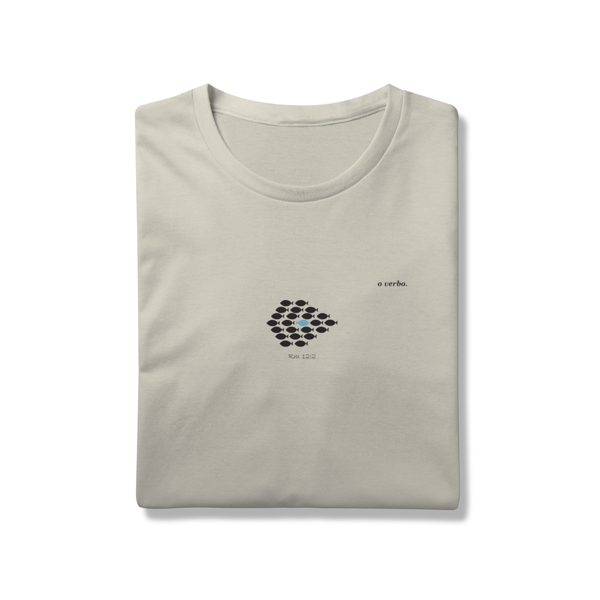 Inspirada em Romanos 12:2“Não se conformem com este mundo, mas transformem-se pela renovação da sua mente” – esta estampa minimalista traz o peixe que nada contra a corrente, símbolo de coragem, autenticidade e da vida em Cristo.
