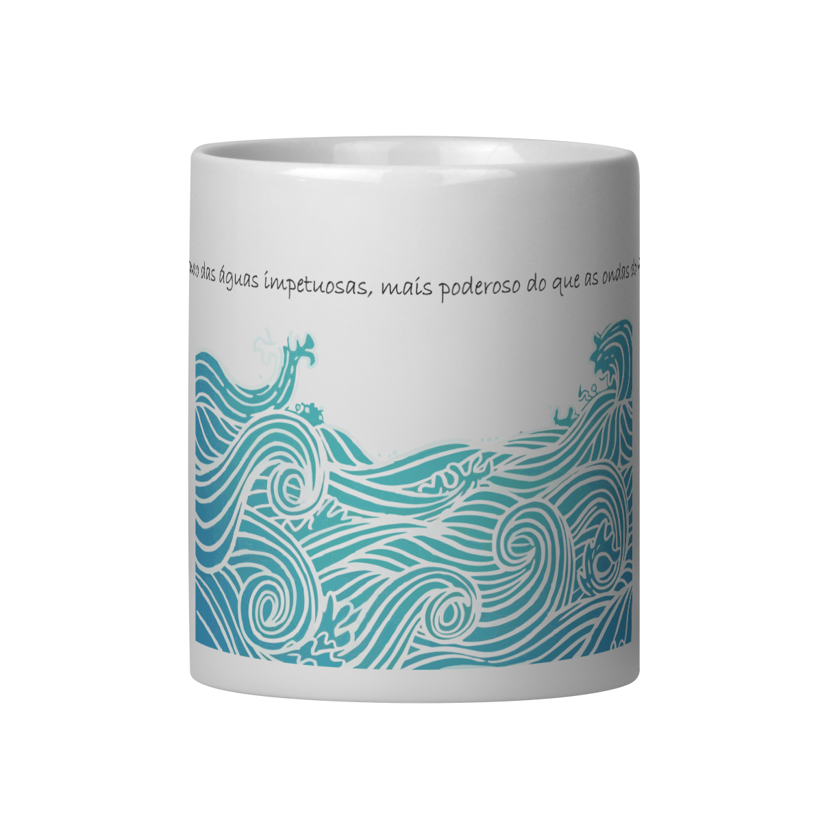 Sinta a força da fé em cada gole com a caneca “Mais Poderoso”. Inspirada no Salmo 93:4, sua arte minimalista traz ondas em movimento, lembrando que, por maiores que sejam as tempestades, o Senhor é mais poderoso do que as águas impetuosas.