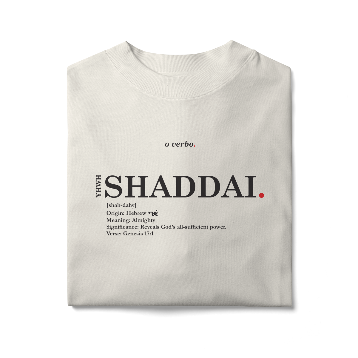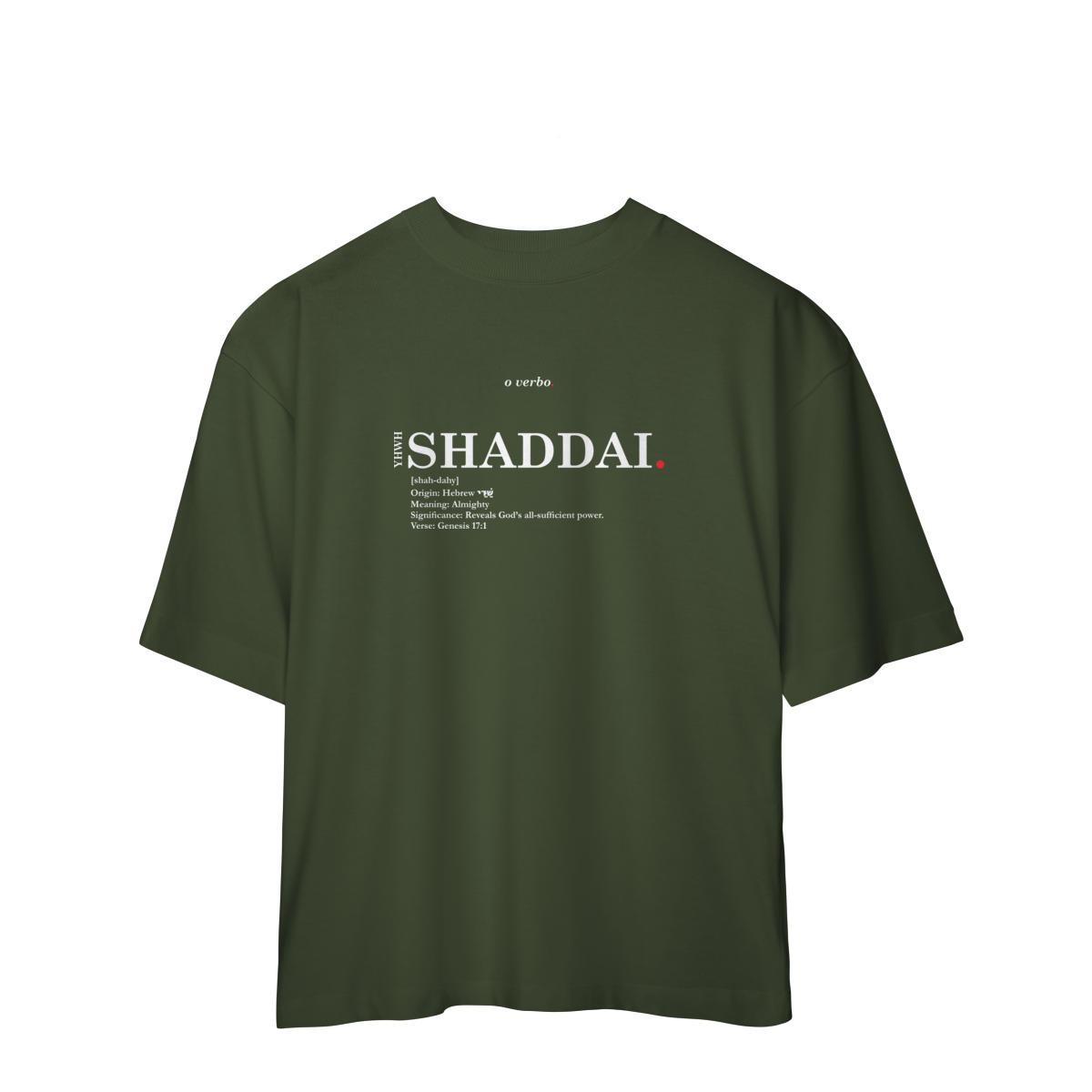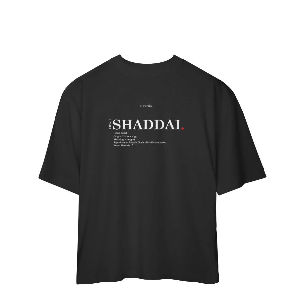 Com design minimalista e tipográfico, esta camiseta oversized é muito mais do que roupa: é uma lembrança viva de que você serve a um Deus ilimitado.