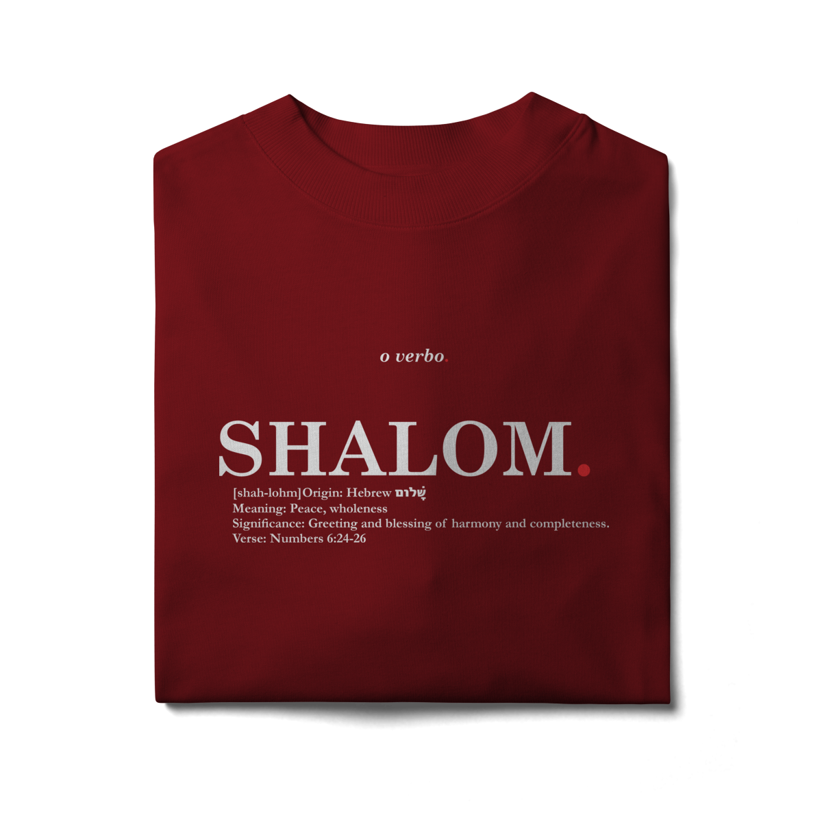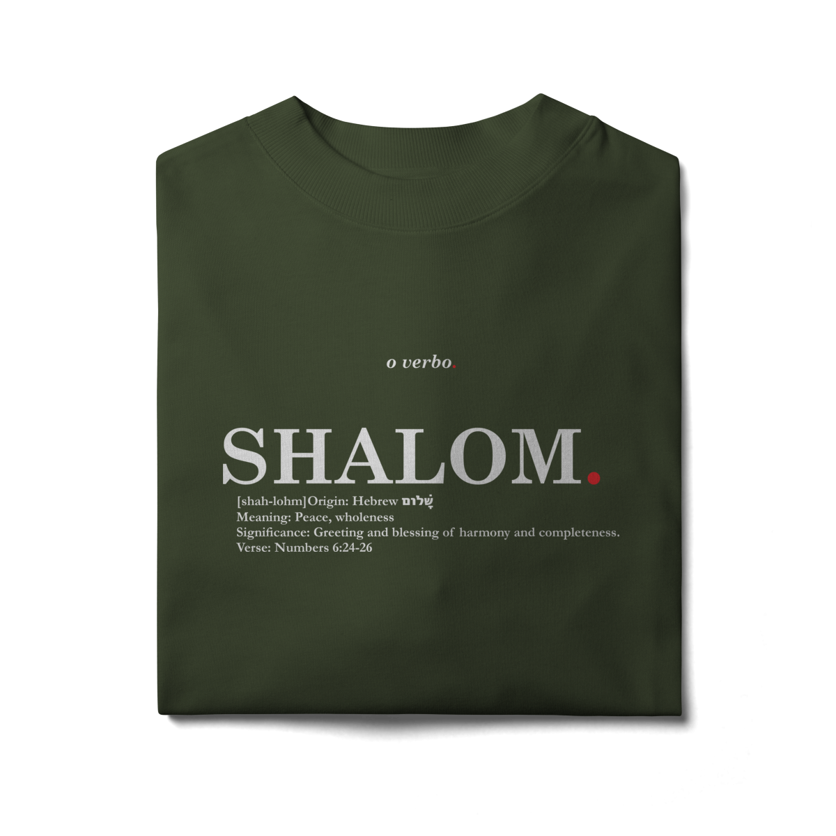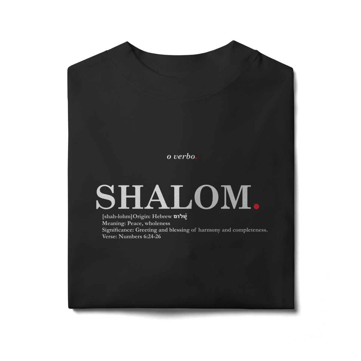SHALOM., palavra hebraica que significa paz, integridade e harmonia, declara a abundância da presença de Deus em todas as áreas da vida (Números 6:24-26).