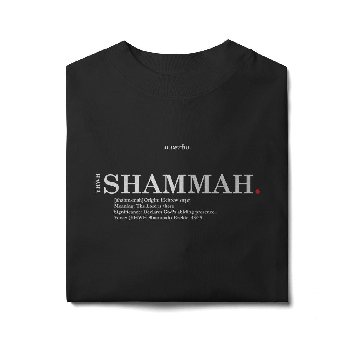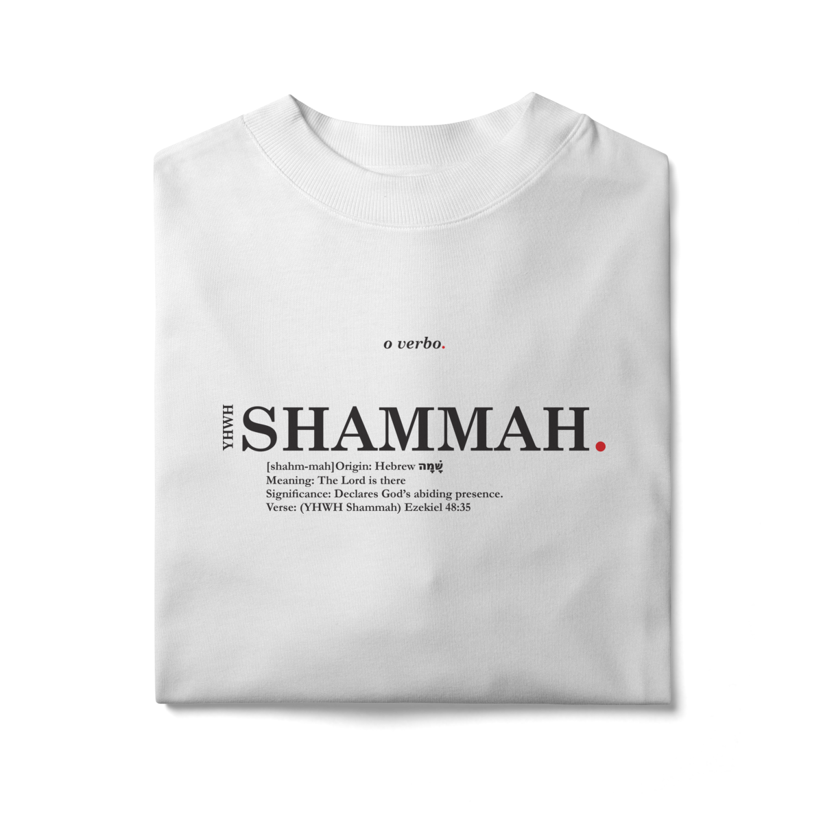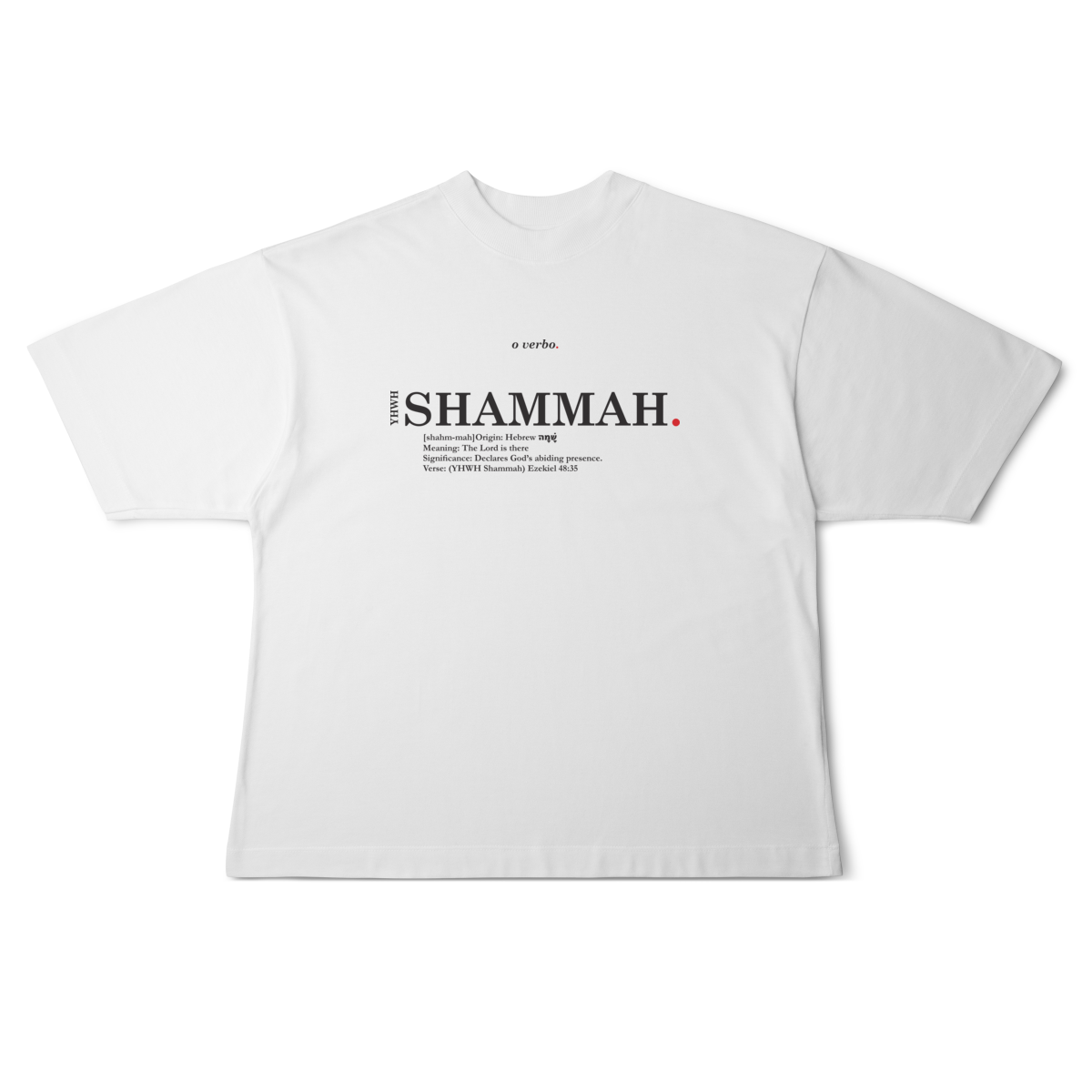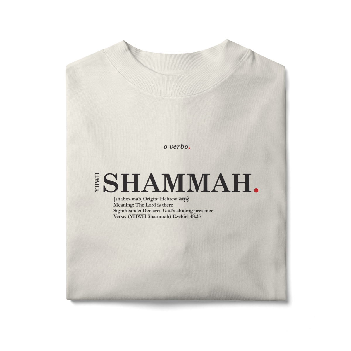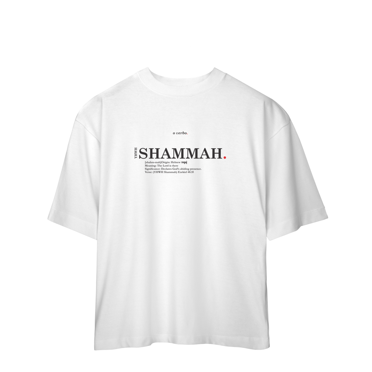 Minimalista, tipográfica e atemporal, esta camiseta oversized não é apenas estilo — é uma confissão de fé de que a presença de Deus é real e eterna.